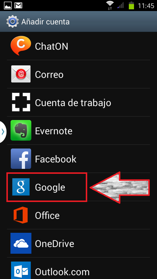 Nos aparecerá una lista, (dependiendo de las aplicaciones ya instaladas tendremos más o menos opciones.) de la cual seleccionaremos Google.