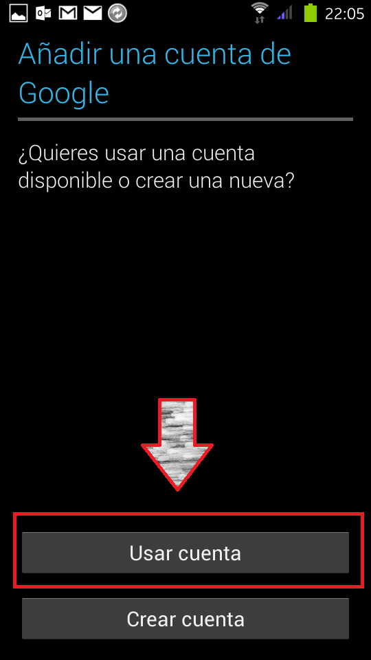 En nuestro caso, vamos a suponer que la cuenta ya la tenemos creada, por lo que elegiremos la opción de Usar cuenta.