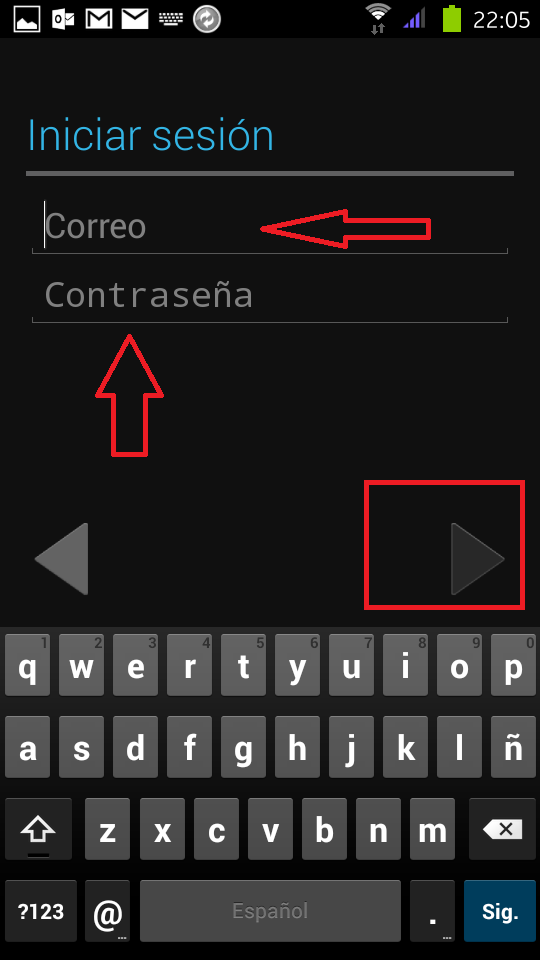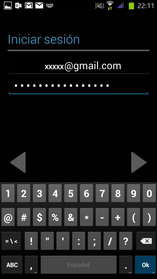A continuación, nos pedirá que Iniciemos sesión, introduciendo la cuenta de correo xxxxxx@gmail.com y la contraseña, una vez introducida avanzaremos con la flecha hacia la derecha.