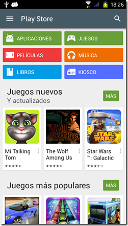 MENÚ DE PLAY STORE