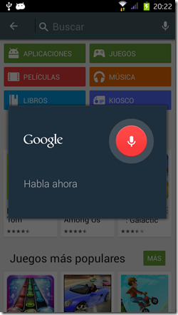 Con esta opción (Que esta presente en muchas de las aplicaciones), Google “escribirá por nosotros”, solo tenemos que hablar lo que queramos escribir y el se encargará de hacerlo por nosotros.