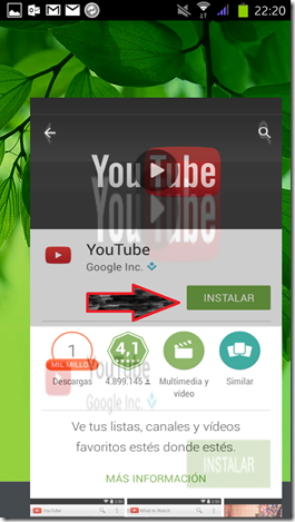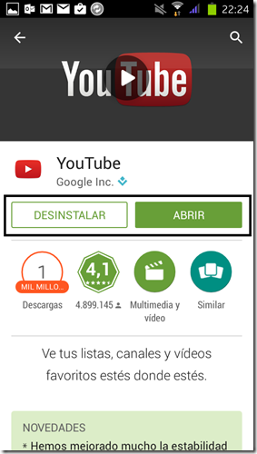 Desde aquí mismo podemos empezar a usar nuestra aplicación, en nuestro ejemplo: YOUTUBE.