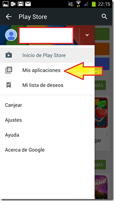 Y acceso a nuestra cuenta de Google Play, con distintas opciones.