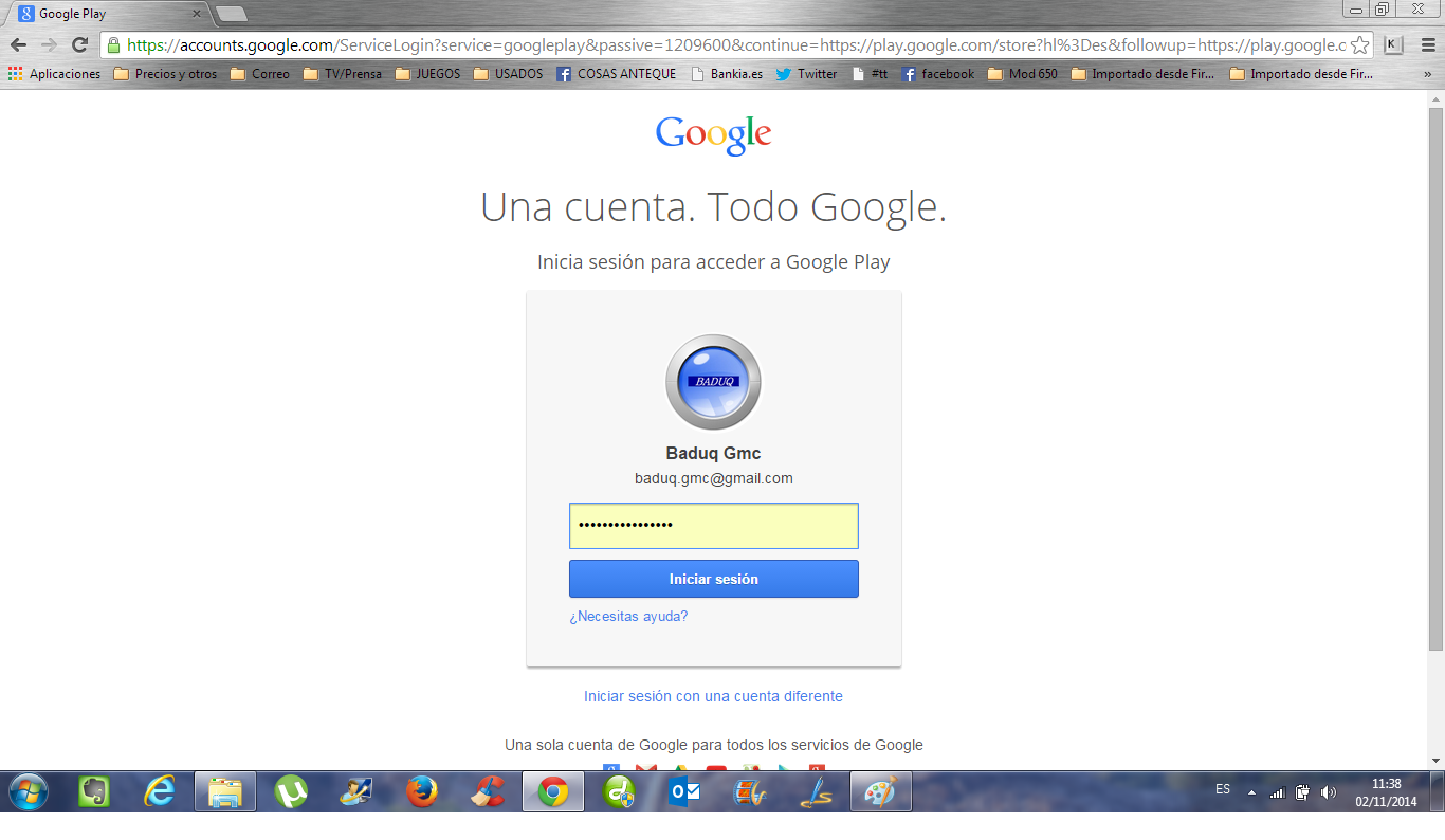 Y nos llevará a la pagina para Iniciar sesión, en la cual introduciremos la cuenta que tenemos asociada en nuestro dispositivo Android. Una vez introducida pulsaremos en INICIAR SESIÓN.