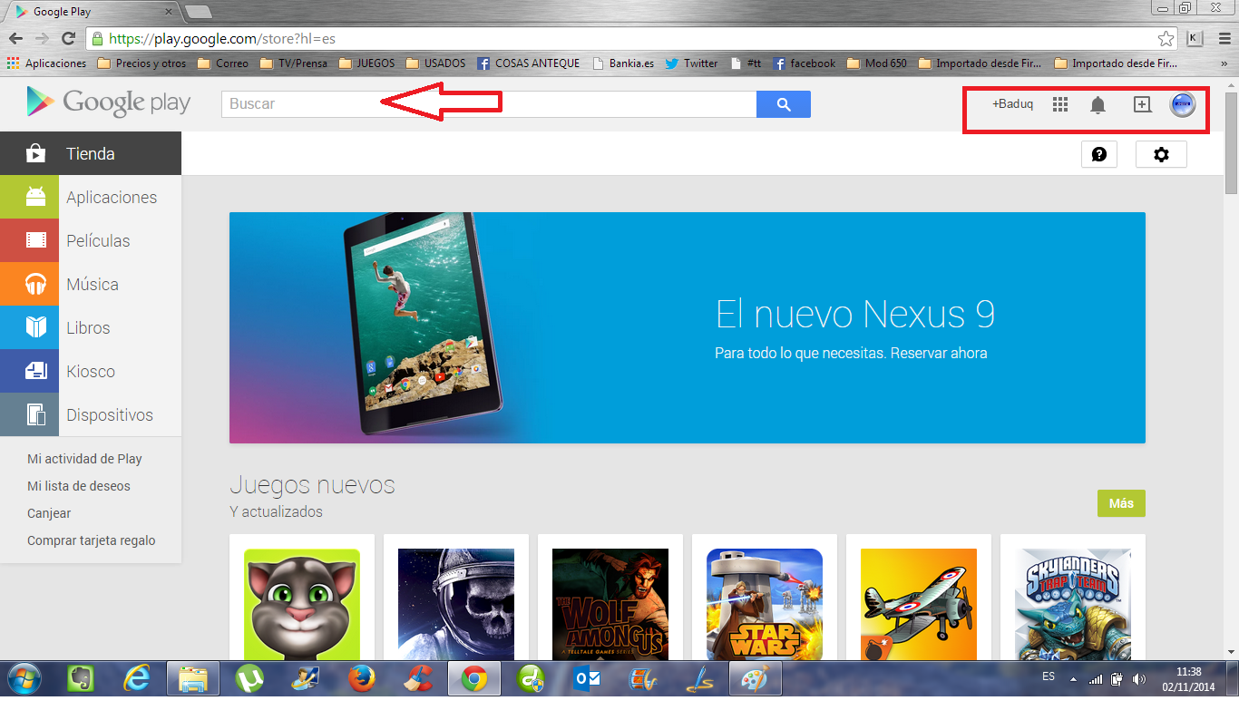 Lo cual nos volverá a llevar directamente a la pagina de Play Store, pero esta vez ya saldrá en la parte derecha los datos de nuestra cuenta, como que ya hemos iniciado sesión.