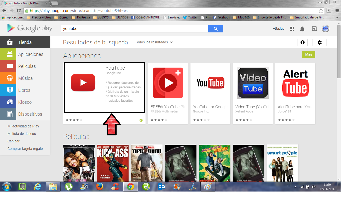 Después aparecerá la lista con las aplicaciones encontradas con el nombre introducido, nosotros en este caso, vamos a elegir la primera que nos aparece, y haremos click sobre ella.