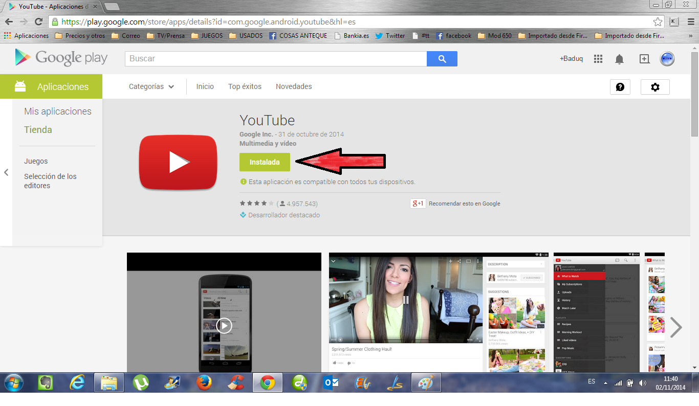 Lo cual nos llevará a la pagina de la aplicación. Pulsaremos sobre el botón INSTALAR