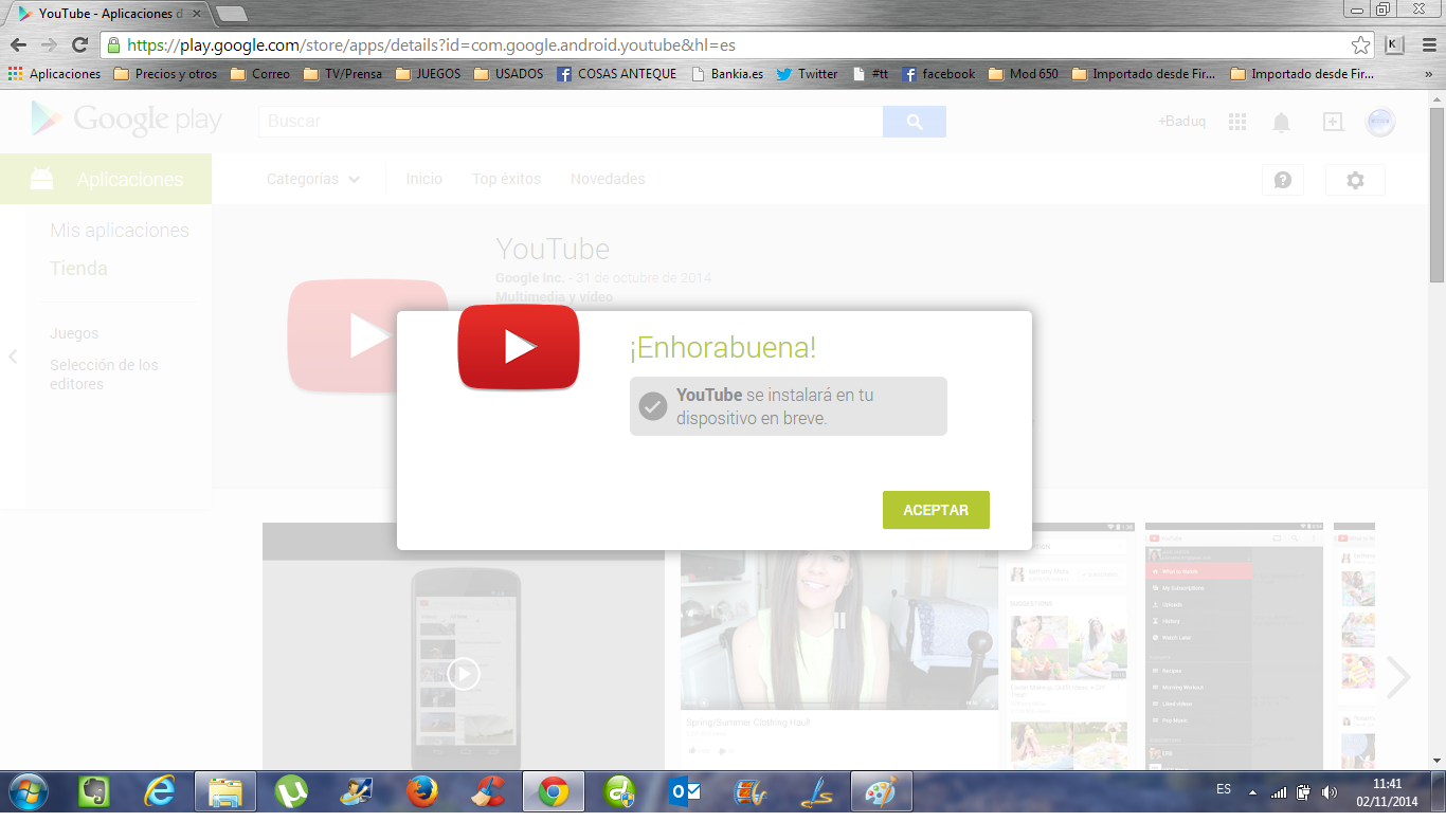 Pulsaremos ACEPTAR, y ya esta. Si el dispositivo esta encendido, comenzará la instalación. Si el dispositivo en ese momento estuviera apagado, la instalación comenzará cuando enciendas el dispositivo.