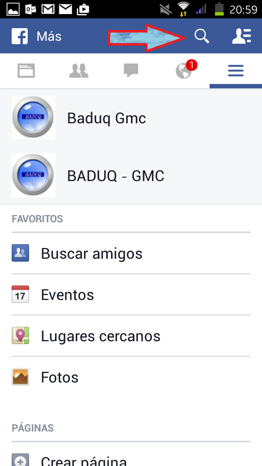 Lo primero en nuestra aplicación Android tendremos un acceso más “rápido”, para ello pulsamos sobre la “lupa”.