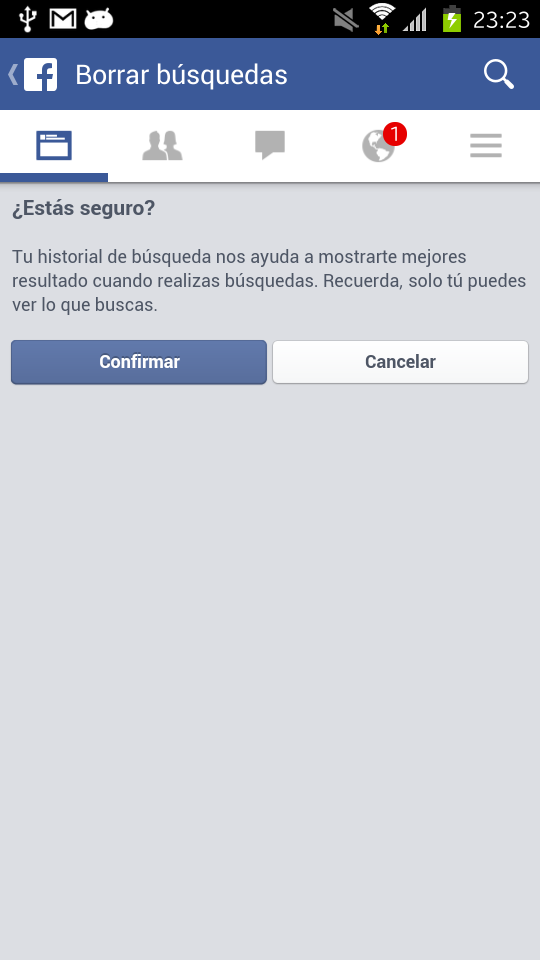 Y simplemente con pulsar sobre Confirmar será borrado todo el historial de búsquedas.