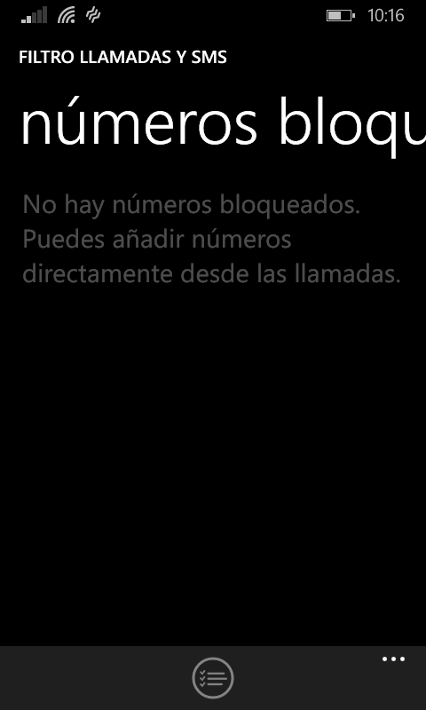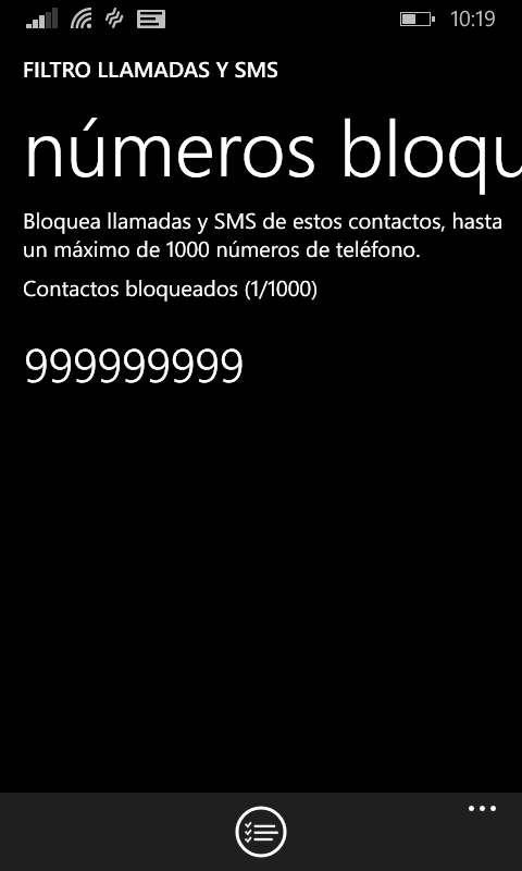 En la cual podéis observar que ahora mismo no existe ningún numero en la lista. Y nos indica como agregar un número para bloquearlo.