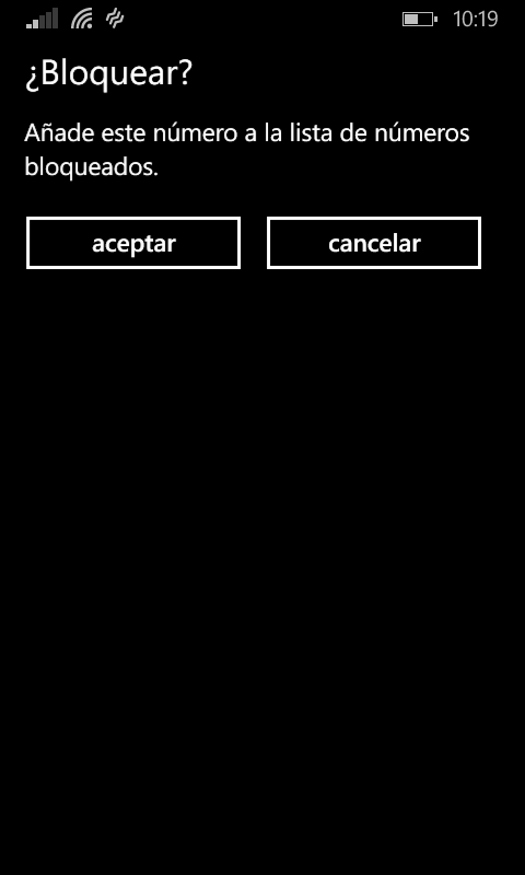 Como vemos en la imagen de arriba, tenemos la opción de bloquear número. A continuación (como muestra la imagen de abajo) nos preguntará si queremos bloquear y añadir ese número a la lista de bloqueados.