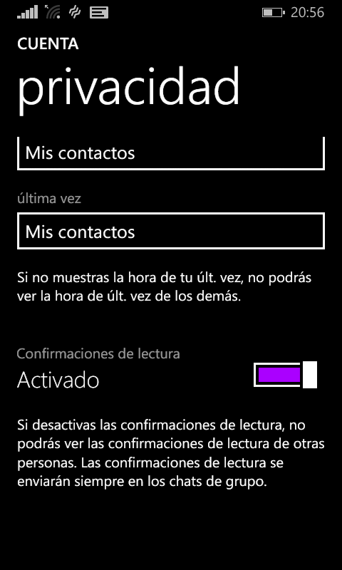 Como viene siendo habitual, en las actualizaciones de WhatsApp, las versiones más recientes, siempre en Windows Phone, suelen llegarnos bastante más tarde. En esta ocasión os vamos a enseñar como poder activar o desactivar su famoso check azul.