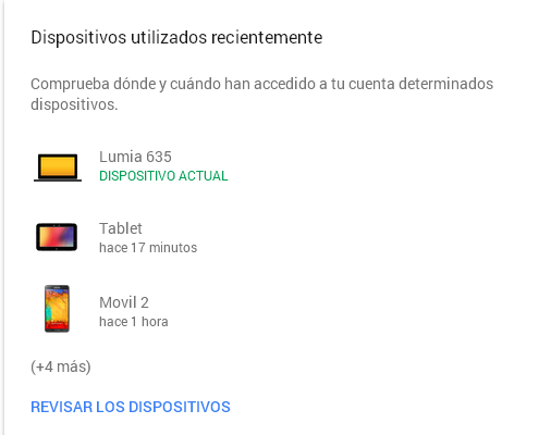 También puedes ver que dispositivos estas usando recientemente para tu cuenta.