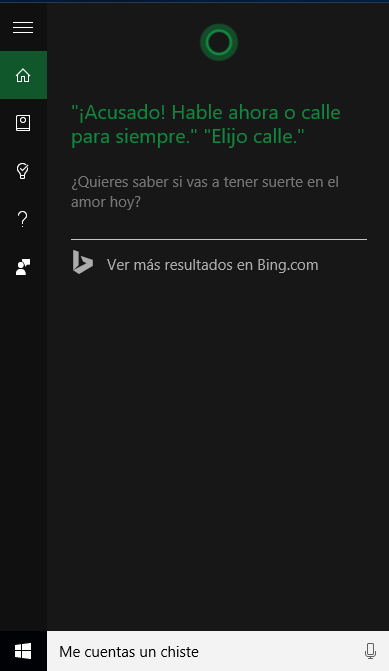Una de las cosas que se me ocurrió un día decirle fue: Cortana me aburro... A lo cual ella me respondió, que si quería que me contará un chiste.