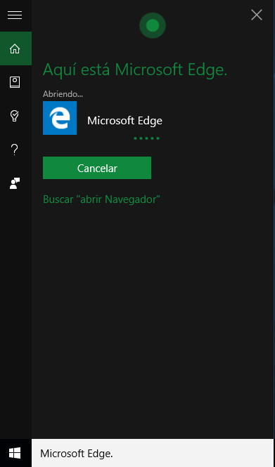 Y ella nos pregunta cual queremos abrir. Al decirle Microsoft Edge, ella comienza a abrirlo por nosotros.
