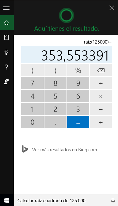 Otras de las cosas que he probado fue a decirle que si me calculará la raíz cuadrada de una cifra.