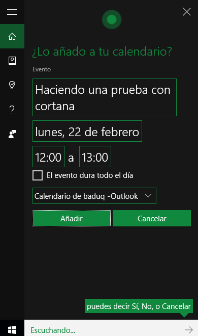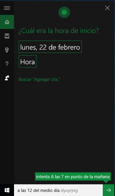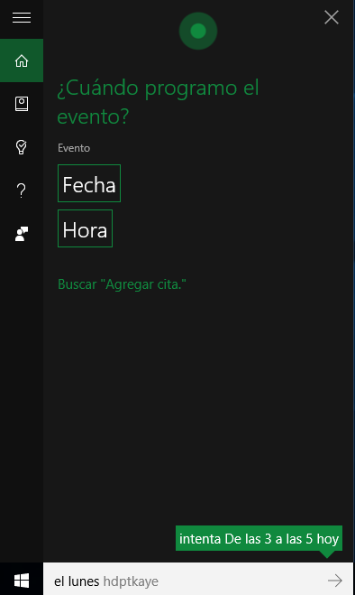 En este ejemplo, le hemos indicado que queremos añadir una cita, y empieza por preguntarnos, cuando tendrá lugar la cita.
