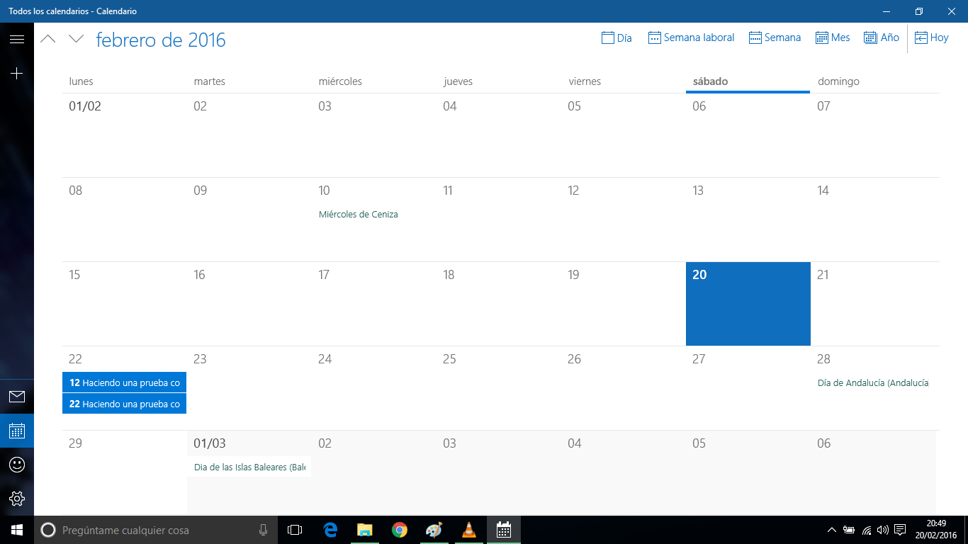 En el ejemplo de arriba, observareis que hay 2 citas creadas para el día 22 de febrero. Una es la que acabáis de ver, y otra es de otra prueba realizada con las horas, 10 de la mañana o de la noche.