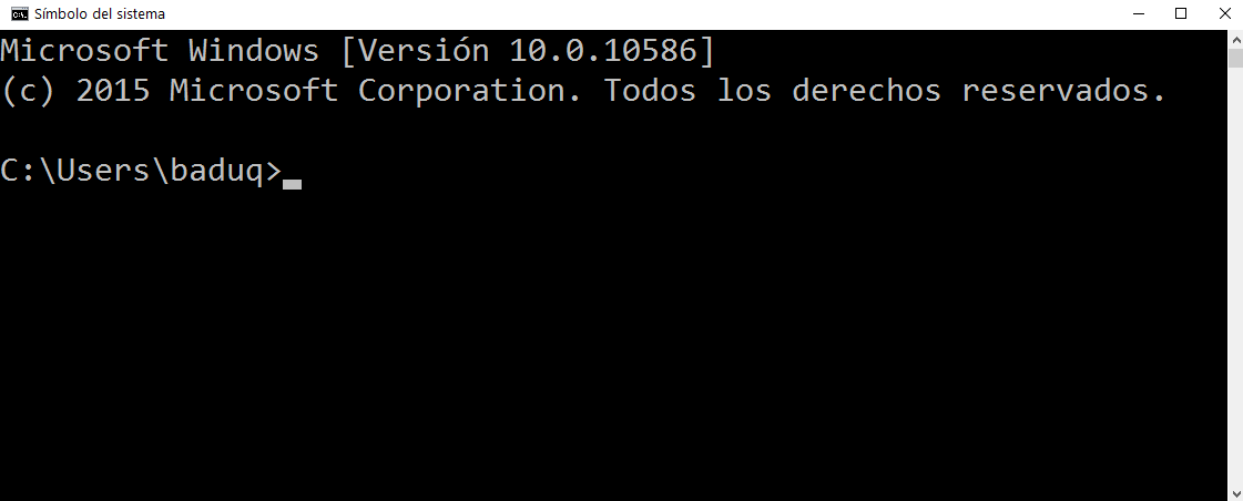 Se abrirá nuestra Consola de comandos (o símbolo del sistema.)