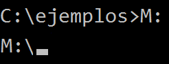 Para poder cambiar de unidad, por ejemplo del disco C, a la unidad cd CD o a un PenDrive, que vamos a suponer que es la letra M, lo único que deberemos hacer es poner la letra de unidad y : (dos puntos).