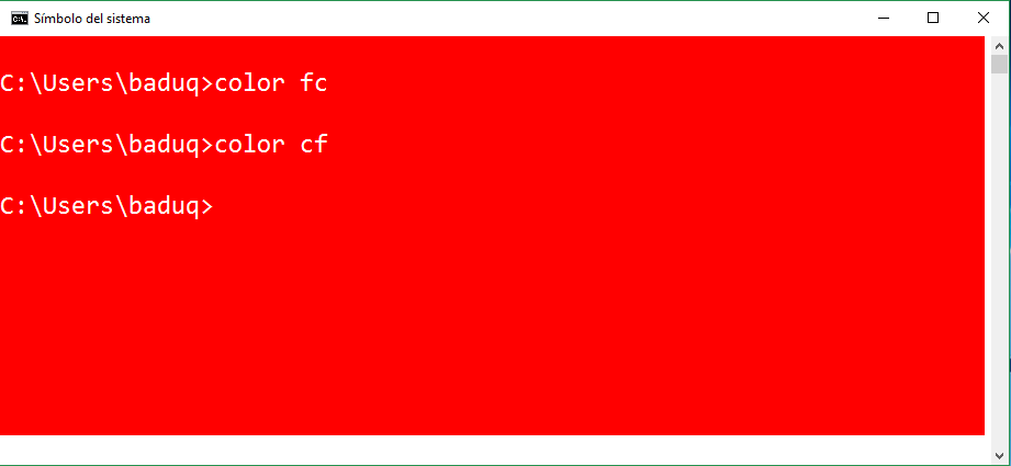 Configura los colores predeterminados de primer y segundo plano de la consola.Su sintaxis es: color [argumento1 argumento2]