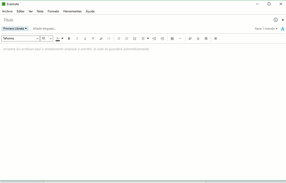 Se abrirá la ventana para la nueva nota. Y nada más empezar a escribir, lo hará dentro del área del contenido de la nota.