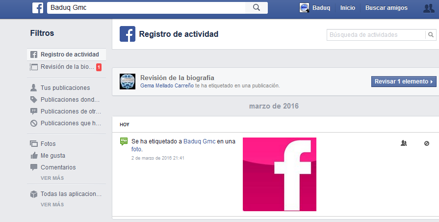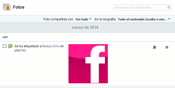 Cuando pulsemos sobre “Fotos”, en el centro de la ventana, nos aparecerá una lista con las imágenes en las cuales hemos sido etiquetados.