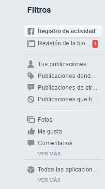 Una vez que entremos en Registro de Actividad, en la parte izquierda de la ventana, tenemos otro menú, con distintas opciones.