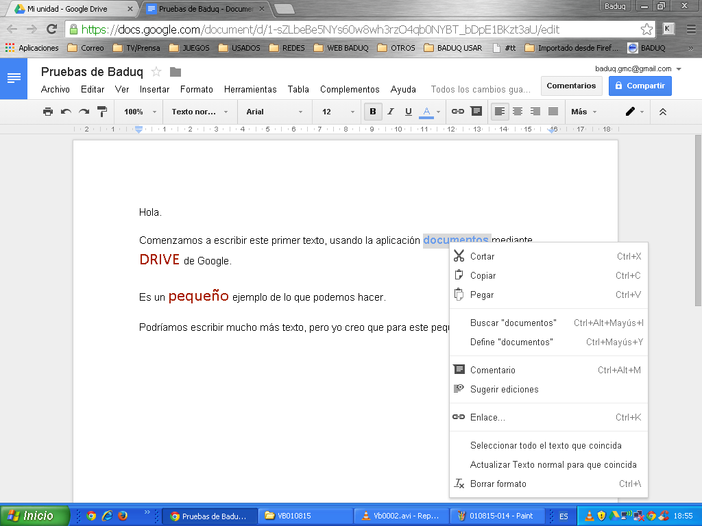 Os vamos a enseñar unas pequeñas opciones de las que posee esta Aplicación Web. Si por ejemplo queremos dar un formato determinado a una palabra. Haciendo doble click sobre ella, quedará seleccionada.